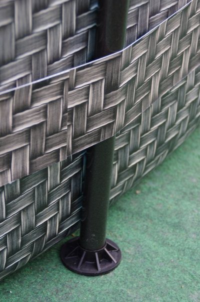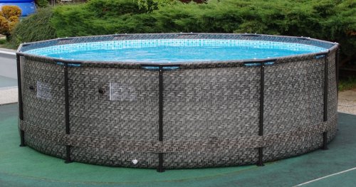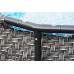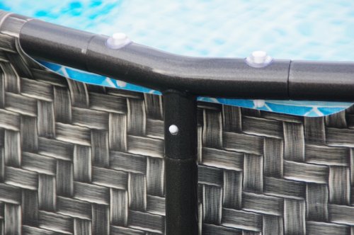 Trojvrstvý laminovaný materiál PVC ve speciální verzi Polystrenght nabízí lepší odolnost proti propíchnutí. Vnější stěna bazénu imituje potiskem strukturu a barvu ratanu. Krásně tak splyne s okolní zelení a nevyčnívá tolik jako jeho modré alternativy. Kvalitní vrstvy a technologicky přesné zpracování zaručují dlouhou dobu bezproblémového užívání výrobku.