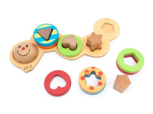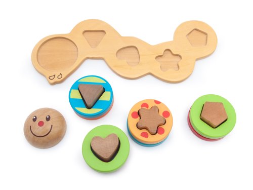 Obsahuje: Obsahuje 14 dílů - hlavičku, tělo, špalíčky v různých tvarech, navlékací barevné kroužky