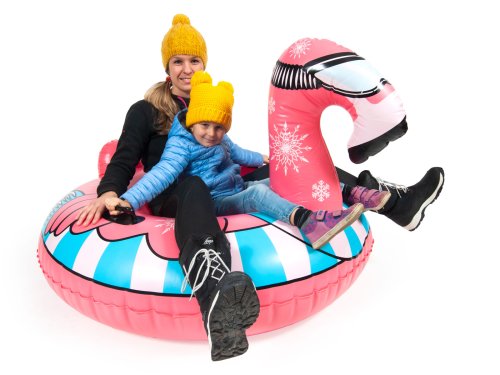 Milujete nafukovadla na léto? A co teprve zimní radovánky na sněhu s tímto parádním nafukovacím plameňákem, který má šálu a lyžařské brýle, navíc je přímo vyrobený pro použití na sněhu. Všichni ho budou milovat – tak hurá z kopce dolů!