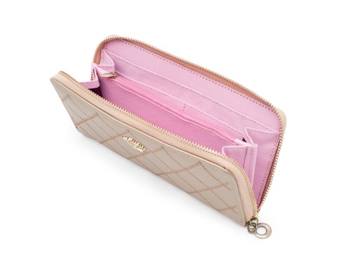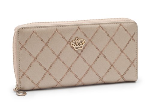 Velice elegantní dámská peněženka z vysoce kvalitní eko kůže se hodí pro každou moderní ženu. Zdobí ji elegantní prošívání ve tvaru mřížky a drobná zlatá korunka. Prostorná peněženka, kde najdou své místo kromě peněz i veškeré doklady, kreditní i zákaznické karty. Peněženka má po obvodu zip a lze ji použít jako elegantní psaníčko do společnosti i na party.