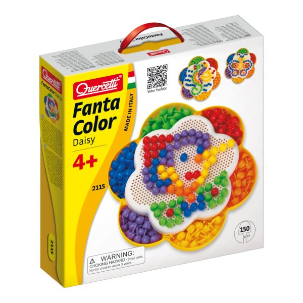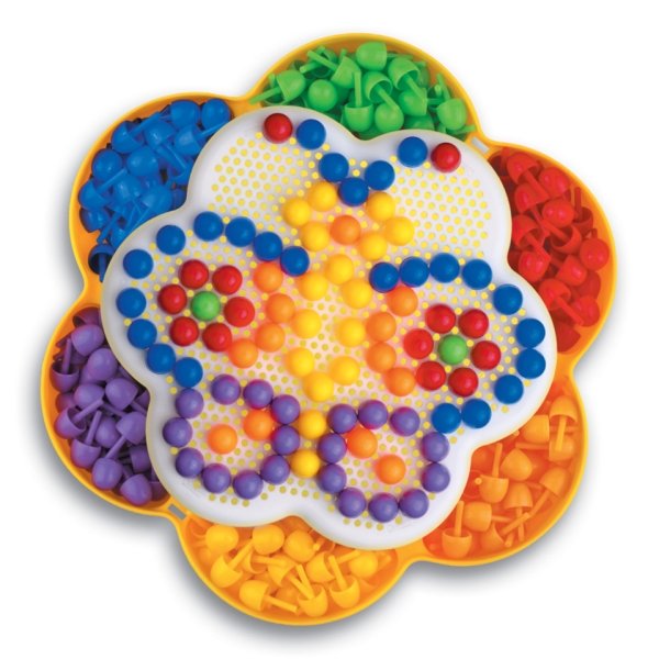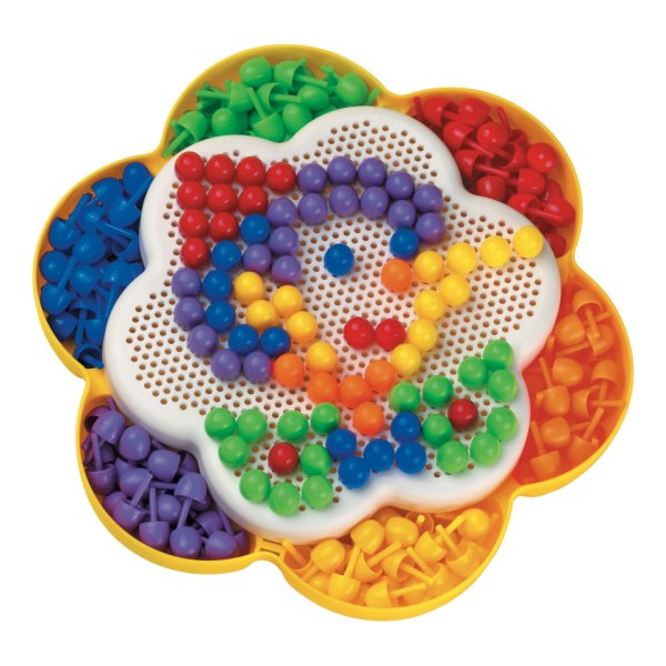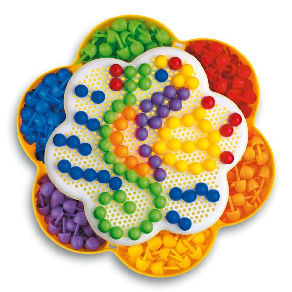 S mozaikou mohou děti kreativně relaxovat při tvorbě rozmanitých obrázků. Umisťováním různobarevných kolíčků do děrované desky, ať už s pomocí přiložených předloh, nebo vlastní fantazie, mohou rozvíjet představivost, soustředění a trpělivost. Díky praktickému balení v podobě květiny lze mozaiku snadno uklidit, zároveň také před tvorbou vytřídit kolíčky dle barev. Vyrobeno z kvalitního plastu, který je pevný, odolný a zároveň nezávadný. Hlavní vlastnosti:150 kolíčků (6 barev) a předlohypraktické balenívyrobeno v Itálii