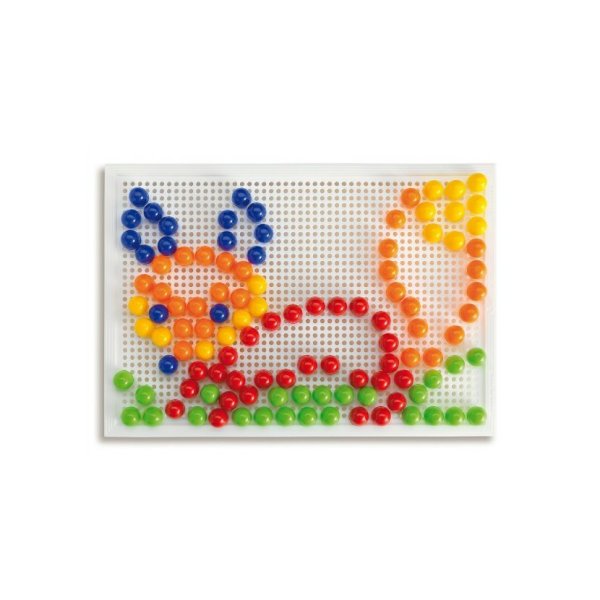 Mozaiky u dětí rozvíjejí jemnou motoriku, tvořivost a fantazii. Skládají se z kufříku, perforované hrací desky a barevných kolíčků s hlavičkami různých barev, průměrů a tvarů. Pomocí těchto kolíčků, které se zasazují do otvorů v hrací desce, tvoří děti různé obrázky nebo vzory. Po skončení hry lze vše uložit do kufříku, jehož víko po zajištění pojistkou tvoří sama hrací deska. Vyrobeno z plastů špičkové kvality. Hlavní vlastnosti: rozvíjí jemnou motoriku, tvořivost a fantaziiobsahuje 150 knoflíků o průměru 15 mm