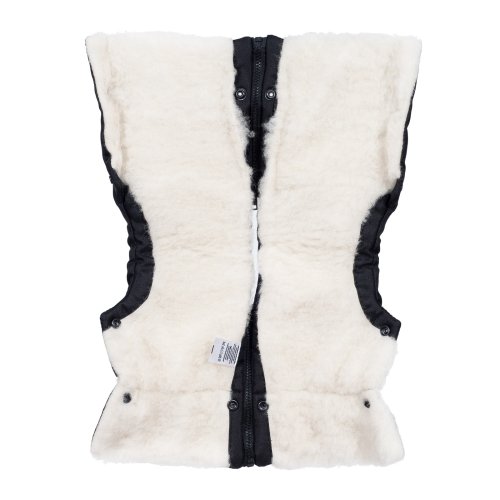 Nepromokavý fusak s rozepínáním vpředu a rukávník na kočárek z ovčí vlny do nízkých teplot ve stejné barvě.