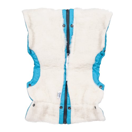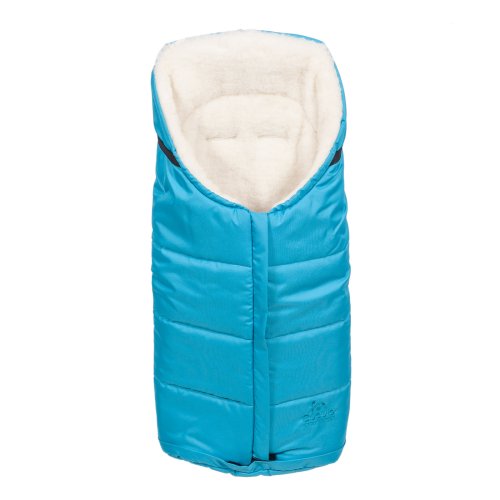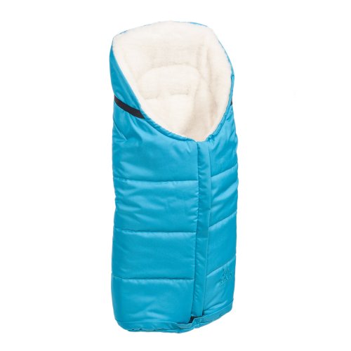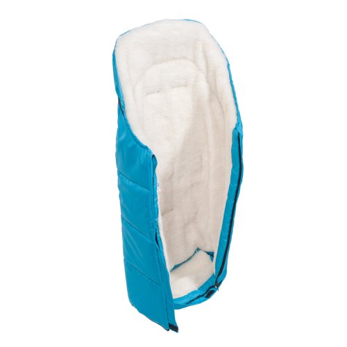 Nepromokavý fusak s rozepínáním vpředu a rukávník na kočárek z ovčí vlny do nízkých teplot ve stejné barvě.