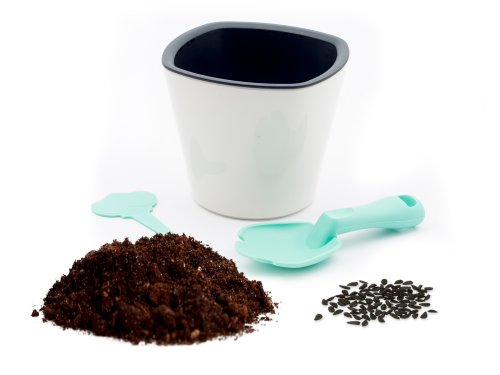 Sada obsahuje designový samozavlažovací květináč, čerstvý substrát, semínka k vypěstování, návod.