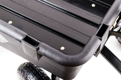 Pevná korba z tvrzeného odolného plastu je vhodná pro převážení pevných, polotekutých či sypkých materiálů. Prakticky řešený výklopný mechanismus usnadní manipulaci při vykládce. Vodicí tyč s rukojetí lze navíc snadným krokem změnit v závěsnou oj a vozík připevnit za zahradní traktor. Celkově je zahradní vozík G21 GA 120 velmi dobře řešeným vozíkem, který díky použitým odolným materiálům, bytelné konstrukci a praktické sklápěcí korbě o objemu 120 l zastane většinu těžké práce při přesouvání a převážení břemen s hmotností až do 600 kg.